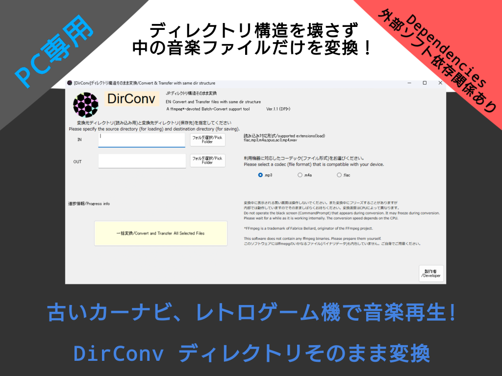 ディレクトリ構造を保持しながら音楽ファイルを変換してくれるソフト